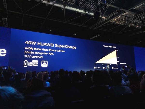 至于充電方面,這次華為可以說是非常出彩了,4200mAh的電池搭配40W的快充,甚至還有15W的無線快充,甚至支持反向無線充電,iPhone XS就算使用PD快充,依舊不是Mate 20 Pro的40W快充的對手。