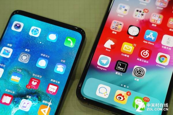 外觀上來說,華為Mate 20 Pro與iPhone XS都采用了劉海屏的設(shè)計,不過從兩款手機(jī)的直接觀感上來看,iPhone XS的邊框?qū)挾人坪醺泳鶆蛞恍.?dāng)然,在整體邊框也更加寬一些,這點(diǎn)發(fā)布會的PPT上已經(jīng)體現(xiàn)過了。