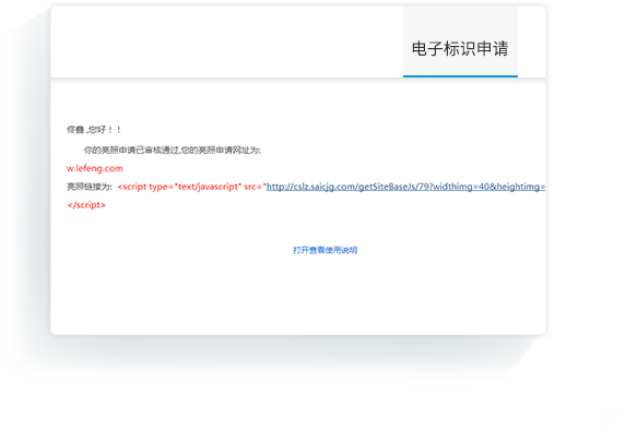 • 可按照郵件的使用說(shuō)明,將電子標(biāo)識(shí)添加到網(wǎng)站首頁(yè)下方的醒目位置
