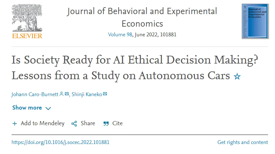 “事實(shí)上,當(dāng)參與者被明確要求將他們的答案與社會(huì)的答案區(qū)分開(kāi)來(lái)時(shí),人工智能和人類(lèi)司機(jī)之間的差異就會(huì)消失。”廣島大學(xué)人文社會(huì)科學(xué)研究生院助理教授 Johann Caro-Burnett 說(shuō)。